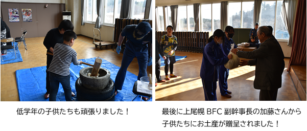 クラブ員の保護者をはじめ、消防団員の協力もあり、おいしい雑煮やあんこ餅を作る事が出来ました。