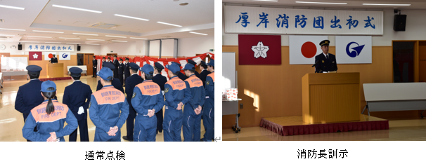 黒田団長の訓示では、昨年中に発生した自然災害や大規模火災に伴い防災・減災の重要性を改めて認識するとともに、厚岸消防団は時代の変化を的確に捉え、今後も教養・訓練に励み、魅力ある組織づくと活動を継続していきたいと決意を表明しました。
